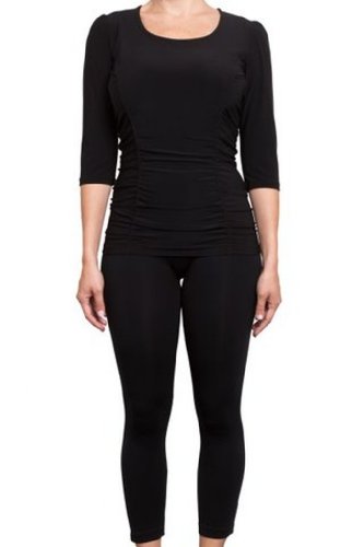 Browse The Essential Womens 3/4 Sleeve Slimming Shirt by Slimmerz by Terri Gillespie® - Black-1X Best and Lower Price
